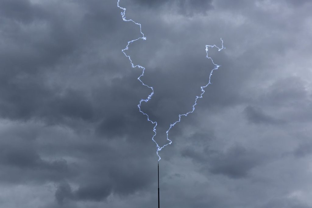 避雷針に意図して落雷させ、建物と人の安全を守る